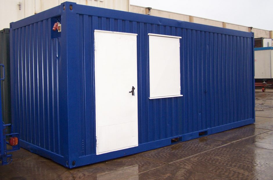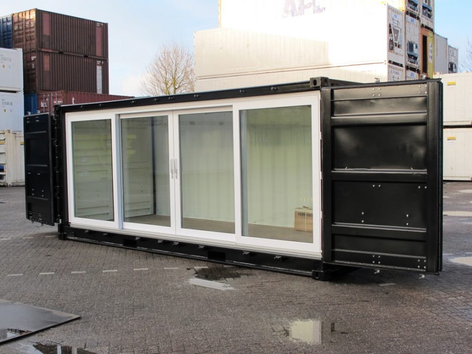 With this modification we have sprayed a 20ft side through container in the desired color of the customer. In addition, our engineers installed sliding door frames, so that the container could be used as a showcase at a fair. The container is also equipped with lighting.